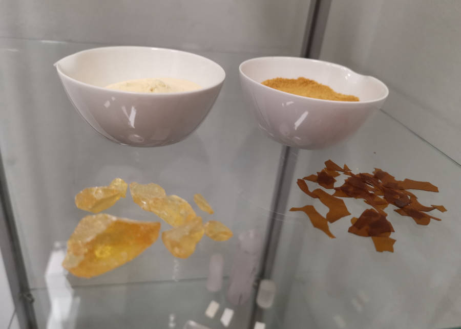 Aussi bien pour notre propre usage que pour la vente, nous produisons des colles thermolabiles à base de produits naturels tels que la gomme-laque et le brai grec pour 2 applications principales, comme le collage de produits à découper et le collage de pièces à rectifier.